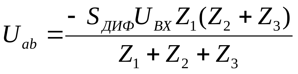 Для того чтобы найти функцию К(р), учтем, что напряжение Uab на зажимах контура возникает за счет тока SдифUвх, проходящего через последовательно-параллельно соединенные элементы Z1, Z2 и Z3