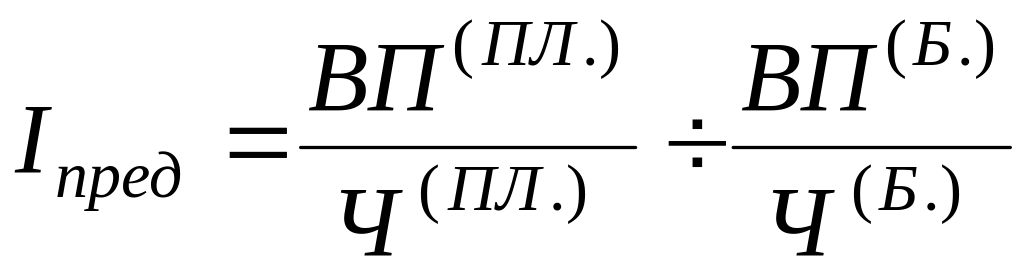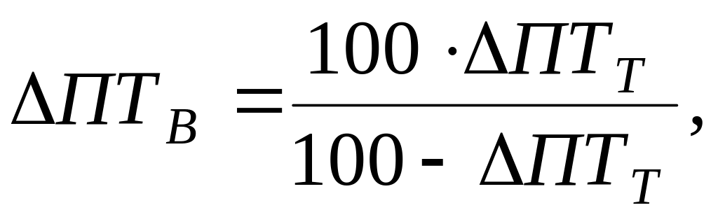 Прирост производительности труда (%) как в целом, так и по отдельным факторам определяется по формуле: