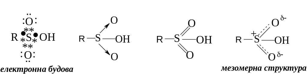 Дійсна будову атому сірки – проміжна між станами, які відповідають цим двом формам (Див. “мезомерна структура”).