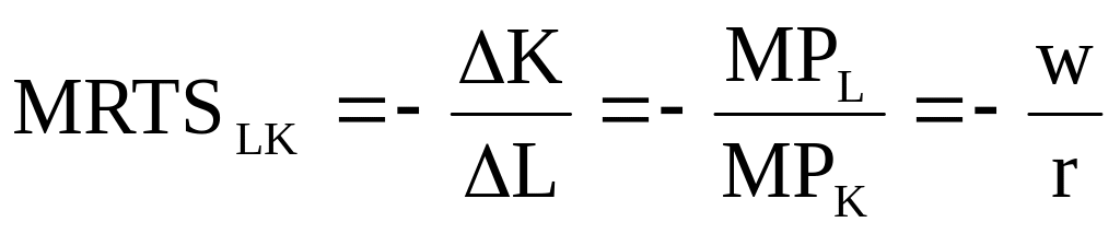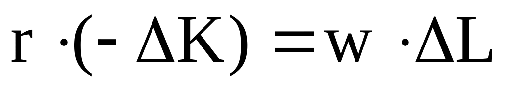 Предположим, что фирма использует два переменных фактора – капитал и труд. Цена единицы капитала – w, цена единицы труда – r.