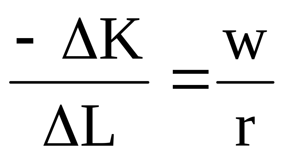 Располагая определенным бюджетом С, наш производитель может купить определенное количество труда – L, по цене – w, и определенное количество капитала – К, по цене – r.