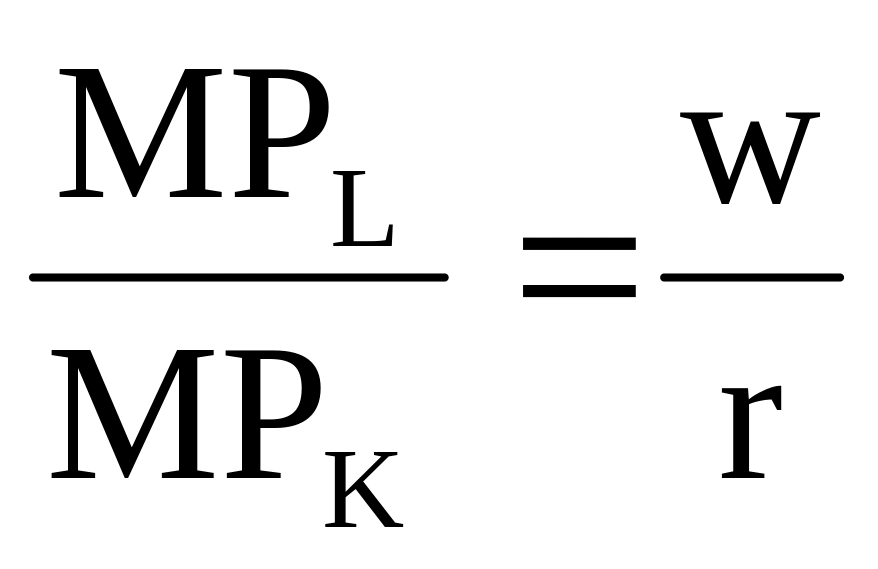 Следовательно, для минимизации своих издержек (при заданном объеме производства) фирме целесообразно замещать один фактор другим до тех пор, пока отношение предельного продукта каждого из факторов к цене единиц данных факторов не составит равную для всех вовлекаемых факторов величину. При выполнении этого условия можно говорить и о том, что фирма достигает максимально возможного выпуска объема продукции при заданных издержках.