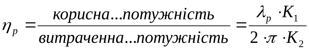 К.К.Д. гребного гвинта, що працює у вільній воді визначається відношенням корисної потужності до витраченої потужності й пов'язан з безрозмірними коефіцієнтами упору й моменту наступним співвідношенням