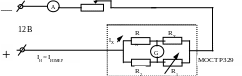 Включить источник питания измерительной ячейки и реостатом выставить силу тока по амперметру IA=0,2 A. Нажимая кнопки ’’грубо’’, а затем ’’плавно’’, ручками установки R1 моста сбалансировать мост. Рассчитать сопротивление проволоки Rх: Rх = RN* R1/ R2