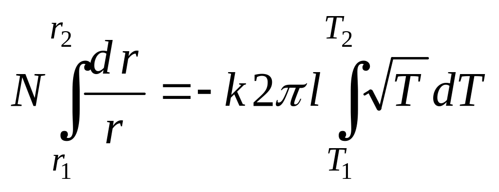 Рассчитаем поток тепла за счет теплопроводности от нагретой проволоки к стенкам трубки. При установившейся температуре через любую воображаемую цилиндрическую поверхность радиуса r между проволокой и трубкой (рис.5) проходит за единицу времени одно и то же количество тепла: