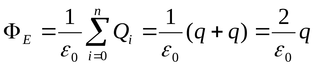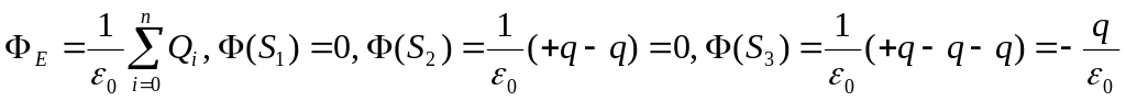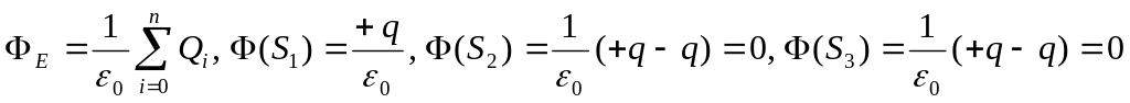 1: Ф(S1)=+q/ε0* 2: Ф(S3)=0* 3: Ф(S2)= -q/ε0 |