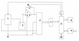 Принцип роботи системи Під впливом напруги U0 у ВК виникає струм Ix, який протікає через вхідний ланцюг операційного підсилювача. Завдяки використанню спеціального ОП з малими вхідними струмами в гілці зворотного зв'язку Rос протікає струм Iос, що відрізняється від Ix на величину близько 10-12А. Це забезпечує високу чутливість вимірювальної схеми. Напруга Ux=Iос∙Rос перетвориться за допомогою АЦП в код, співвіднесений з велічиною опорної напруги Uоп. Далі, цей код через буфер даних поступає в МПК, який забезпечує передачу інформації через блок інтерфейсу 9 в персональний комп'ютер ПК. Зміна масштабу перетворення Ix і управління величиною U0 здійснюється через регістр управління з клавіатури терміналу або по командам ПК, що приймаються через інтерфейс.