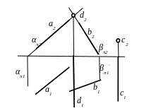 Рис. 5.24. Проведение прямой линии d параллельно прямой линии с и пересекающей прямые линии а и b