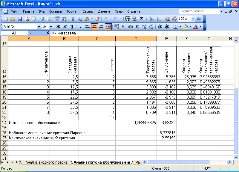 для второго листа - «Анализ потока обслуживания»,