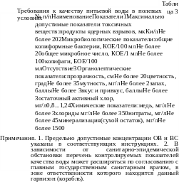 Требования к качеству воды в полевых условиях должны обеспечивать сохранение боеспособности и здоровья военнослужащих в течение времени, определяемого реальной боевой обстановкой (табл. 3).