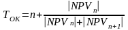 Дисконтированный срок окупаемости не что иное, как «точка безубыточности инвестиционного проекта». Если инвестиционный проект генерирует положительные денежные потоки, после «точки окупаемости» дисконтированный денежный поток положителен. Если при переходе от шага n к шагу n+1 NPV меняет знак, то срок окупаемости в шагах можно рассчитать по формуле: