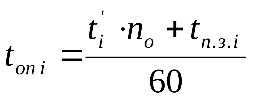 где t'i — норма штучного времени на i-й операции с учетом коэффициента выполнения норм, мин.