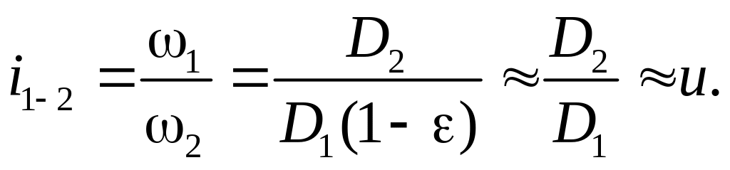 Приравнивая правые части равенств, получим ω1(D1/2) = ω2(D2/2)или ω1D1 = ω2D2. Отсюда