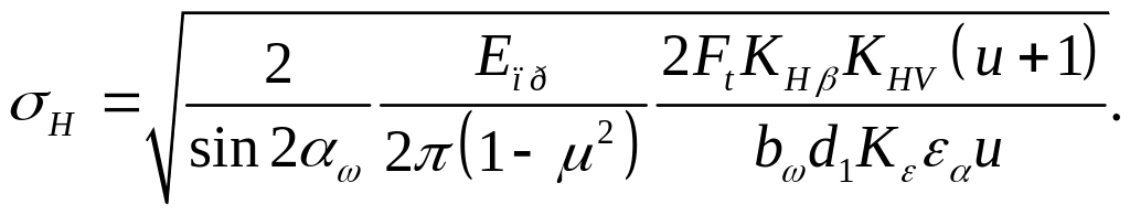 материалов сопряженных колес (ZM = 275 МПа1/2 — для стальных колес);