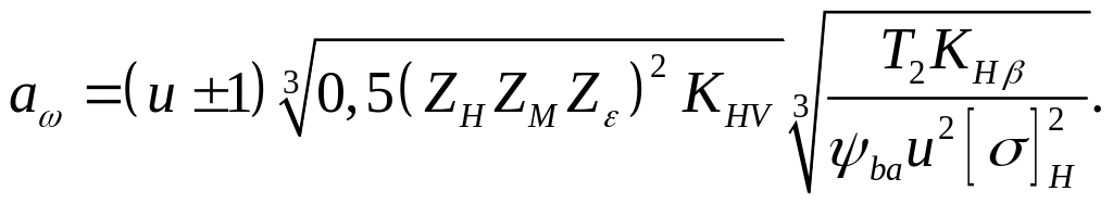 3.44. После некоторых преобразований формулы (3.21) получим формулу проектировочного расчета для определения межосевого расстояния прямозубых зубчатых передач: