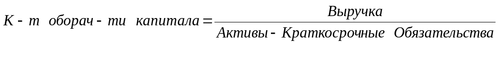 10) Коэффициент оборачиваемости капитала, раз вычисляется как частное от деления выручки на балансовую стоимость активов за минусом краткосрочных обязательств:
