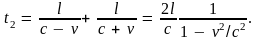 Майкельсон впервые использовал его для проверки возможности определения движения Земли относительно «светоносного эфира» (абсолютной скорости Земли), а точнее, для решения вопроса о том, зависит ли скорость света от скорости движения Земли (классический опыт Майкельсона – Морли). Идея опыта состояла в сравнении прохождения светом двух путей, один из которых совпадает с направлением движения Земли относительно предполагаемого эфира, а другой перпендикулярен ему. Если скорость света, согласно классическому закону сложения скоростей, складывается со скоростью системы отсчета, то она будет различной при двух взаимно перпендикулярных направлениях движения прибора, а значит, возникнет и разность хода лучей 1 и 2. Предположим, что плечо РМ2 совпадает с направлением движения Земли относительно эфира. Если скорсть Земли и скорость света относительно эфира равны соответственно v и с, а эфир не увлекается Землей, то скорость света относительно прибора будет равна c – v для направления PM2 и c + v для направления PM1. Время, необходимое лучу 2, чтобы пройти путь до зеркала М2 и обратно, будет равно