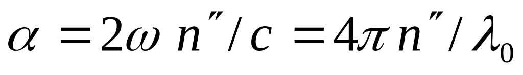 Таким образом, при распространении плоской монохроматической световой волны в среде с комплексным показателем преломления происходят два процесса: изменение скорости распространения волны и ее затухание. Уменьшение скорости световой волны определяется действительной частью показателя преломления , а затухание – его мнимой частью . В этом состоит физический смысл комплексности показателя преломления вещества.