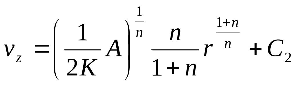 Из условия прилипания расплава к стенкам канала следует, что при r = R, vz= 0, тогда: