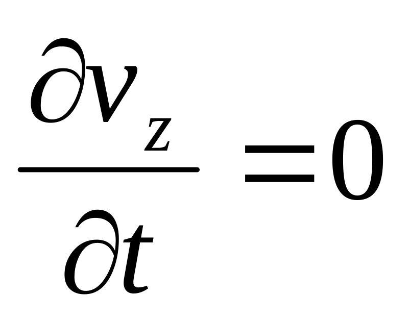 Поскольку течение установившееся, то скорость вдоль оси z и во времени не изменяется, т.е.