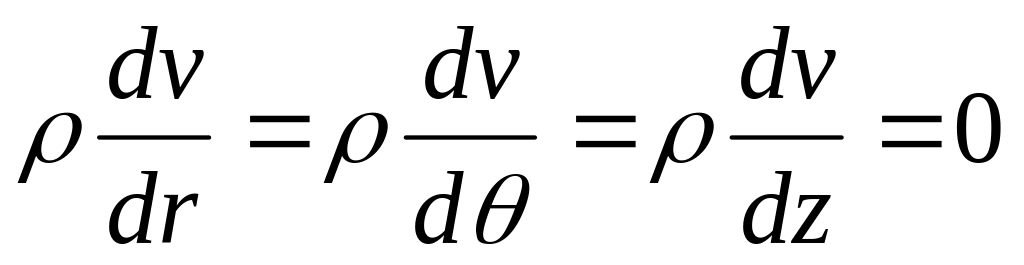 Если проанализировать уравнения с учетом принятых условий и допущений, то видно, что все члены этих уравнений равны нулю, а из уравнения можем записать: