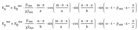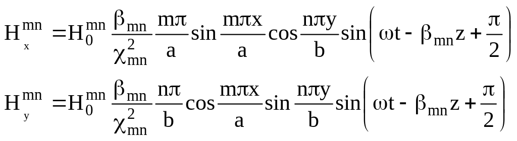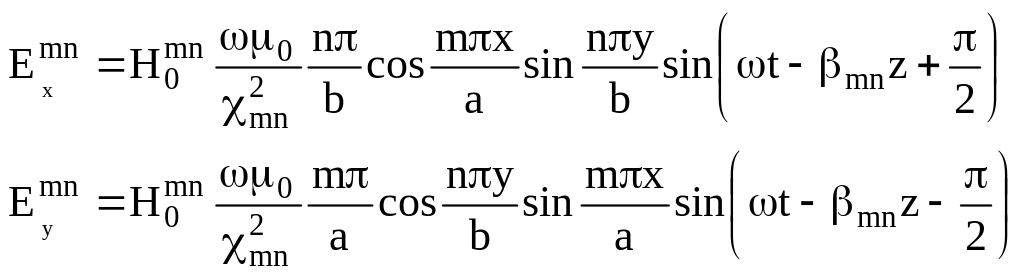 Полученные решения показывают, что прямоугольному волноводу свойственно бесконечное множество свободных полей класса E и H, которые определяются числами m и n. Однако для данной частоты только для некоторых достаточно малых m и n будет выполнено условие (4). Это позволяет ввести некоторую величину, называемую критической частотой и определяемую из следующих формул: