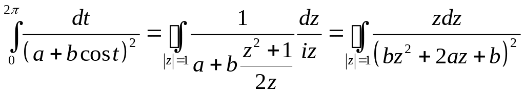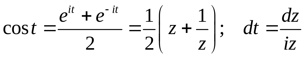 При изменении от до переменная пробегает окружность в положительном направлении, и исходный интеграл сведется к интегралу по замкнутому контуру , т.е.