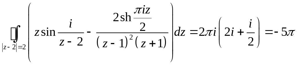 Задача 2.7. Вычислить интеграл от функции комплексного переменного по данной кривой.