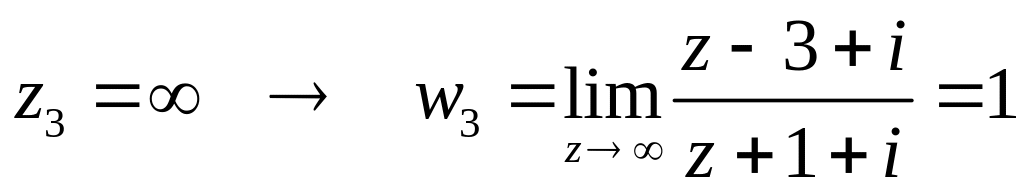 Решение. 1. Дробно-линейное отображение строим по 3-м парам точек и направлению обхода.