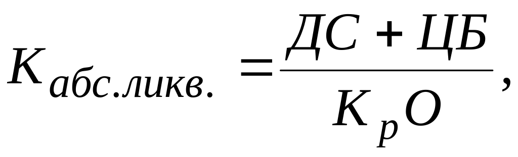 2. Коэффициент абсолютной ликвидности показывает, какую часть краткосрочной задолженности можно погасить наиболее мобильной частью активов - денежными средствами и быстрореализуемыми ценными бумагами. Теоретически достаточное значение коэффициента абсолютной ликвидности 0,2-0,5. Коэффициент абсолютной ликвидности рассчитывается по формуле