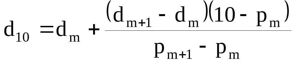dm – диаметр ближайшего сита, через которое прошло менее 10 % всего материала;