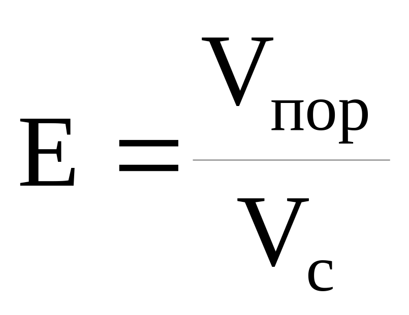 3. Пористость слоя песка (Е) рассчитывают как отношение объема пор (Vпор) к объему слоя песка (Vс):