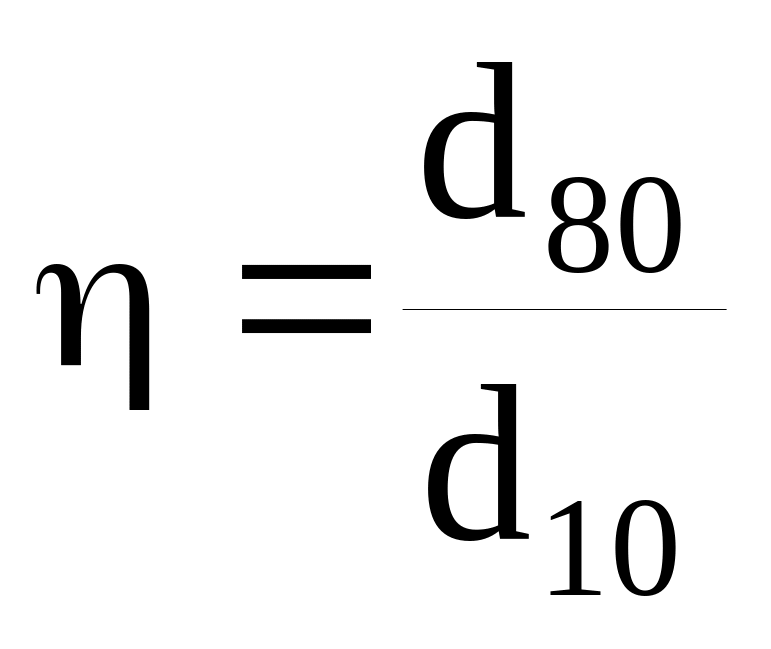 где d80 и d10 – диаметры отверстий сит, через которые проходит 80 и 10 % зерен песка;