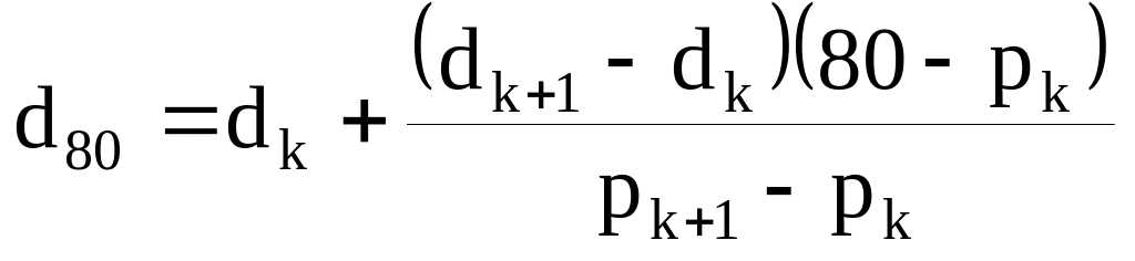 где dк – диаметр сита, через которое прошло менее 80 % всего материала;