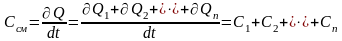 Полная теплоемкость смеси газов представляет собой сумму теплоемкостей газов, составляющих смесь. Это справедливо, поскольку теплота подчиняется закону суммирования (адитивности).