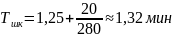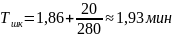 Топер = 0,93 + 0,79= 1,72 мин |