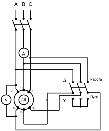 Рисунок 1 - Принципиальная электрическая схема трехфазного