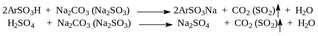 2ArSO3H + Na2SO3 2ArSO3Na + SO2 + H2O