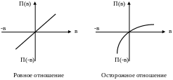 Итак, ровное отношение соответствует лицу, считающему полезность выигрыша или вредность проигрыша пропорциональными их величине, что характерно для “уравновешенного”, “объективного” руководителя (рис. 8.3).