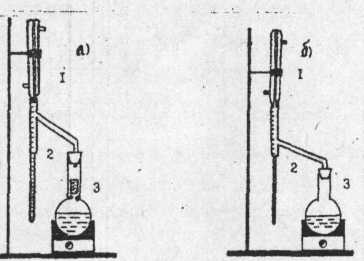 Прилад Діна і Старка (рис. 14, а) для визначення вмісту води складається з холодильника 1; пастки, що калібрується, 2 та круглодонної колби 3.