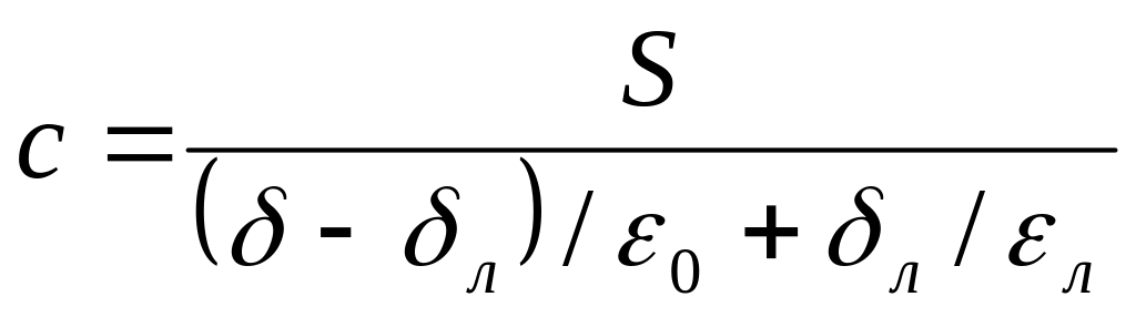 де –довжина зазору між обкладками конденсатора; S – площа обкладок; л – товщина стрічки і л - діелектрична проникність.