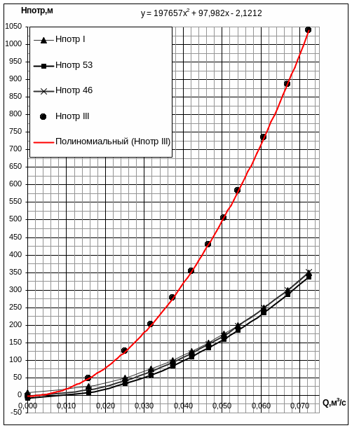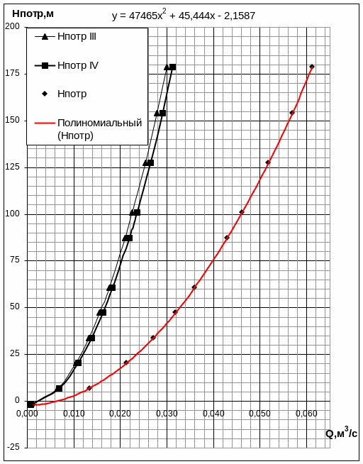 Исходя из зависимостей Hi=f(Qi), находим распределение расходов в каждой ветке.