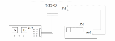 Установка для определения удельного заряда электрона посредством магнетрона состоит из модуля ФПЭ – 03, источника питания ИП и измерительного прибора РА. Блок – схема экспериментальной установки приведена на рис. 6.