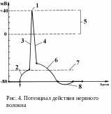 На графике потенциала действия нервного волокна (рис. 4) определить, какими цифрами обозначены:
