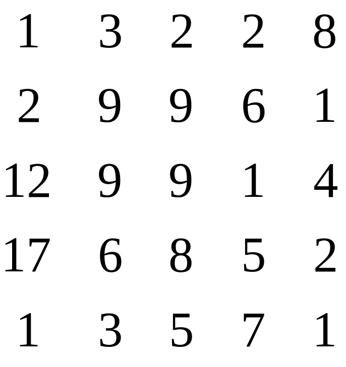 Дана ціла матриця розміром nm. У матриці є “квадрат К”, якщо є підмасив розміром 2х2, що містить значення К. Наприклад, в приведеній матриці є “квадрат 9”.