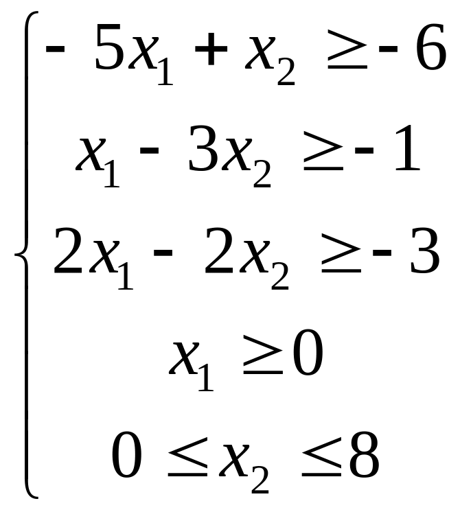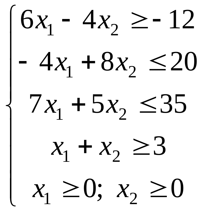 Для анализа задачи введем на плоскости декартову систему координат х1, x2. Найдем на этой плоскости множество точек, координаты которых удовлетворяют условиям (1), и (2). Неравенства (2) означают, что это множество лежит в первой четверти.