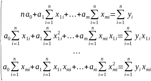 Функція F приймає мінімум при таких значеннях шуканих параметрів а0, а1,…. аm, при яких її виробництво по цих параметрах дорівнюють нулю