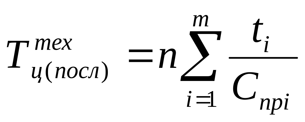 Длительность технологического цикла при последовательном виде движений предметов труда определяется по формуле