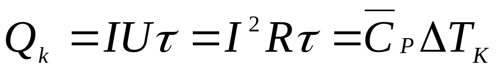 Поскольку и точно учесть практически невозможно, постоянную калориметра определяют экспериментально. Для этого к системе подводят точно известное количество теплоты и измеряют соответствующее повышение температуры калориметра. Источником теплоты может служить процесс с известным тепловым эффектом, например, растворение хлорида калия или электрический ток, пропускаемый через нагреватель 6 (рис.1.2).