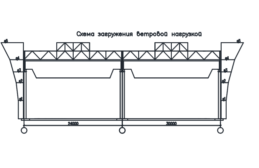 Рис. 10.Расчетная схема рамы при загружении ветровой нагрузкой